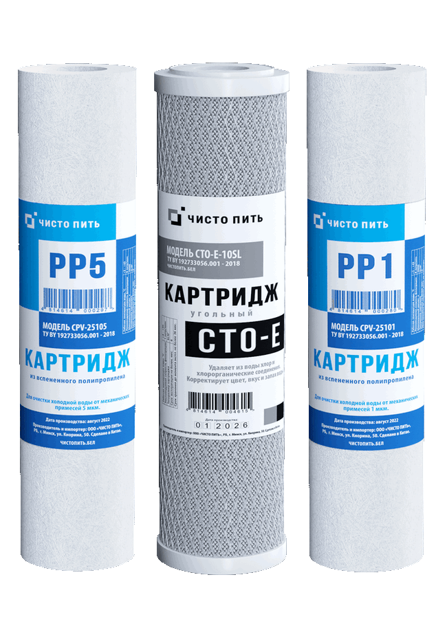 Комплект предварительных картриджей ЧИСТО ПИТЬ серии S для фильтра обратного осмоса обеспечивает базовую очистку воды перед мембраной.